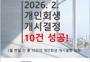 2026년 2월 개인회생 개시결정 총 10건 성공사례♥