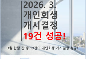 2026년 3월 개인회생 개시결정 총 19건 성공사례♥